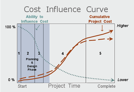 The simple answer is that FEL reduces project risk. FEL dramatically increases critical information early enough to position the project for success. Front-End loading practices fully exploit the window of time in which it is relatively inexpensive to shape the project's outcome (blue rectangle in the Cost Influence Curve visual).