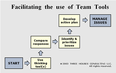 The process of use is shown below. Facilitated initial use of a tool(s) is recommended. After that, most teams would be able to use the tools on their own.